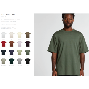 Get to know our AS Colour Heavy Tee, built to last with heavy weight 280 GSM 100% carded cotton. A relaxed fit with dropped shoulders, wide neck ribbing, side seams, shoulder to shoulder tape, and double needle hems ensure street-ready durability and comfort.