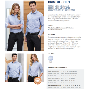 Mens style only available in L/S, Ladies style only available in 3/4 Sleeve