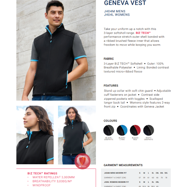 BIZ TECH™ WATER REPELLENT RATING - 3000MM