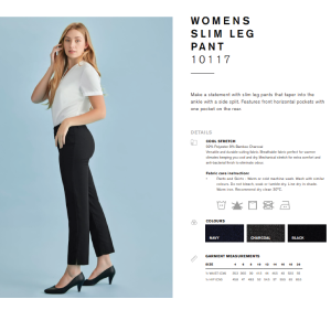 Make a statement with slim leg pants that taper into the ankle with a side splits, belt loops and front horizontal pockets under the waist band.