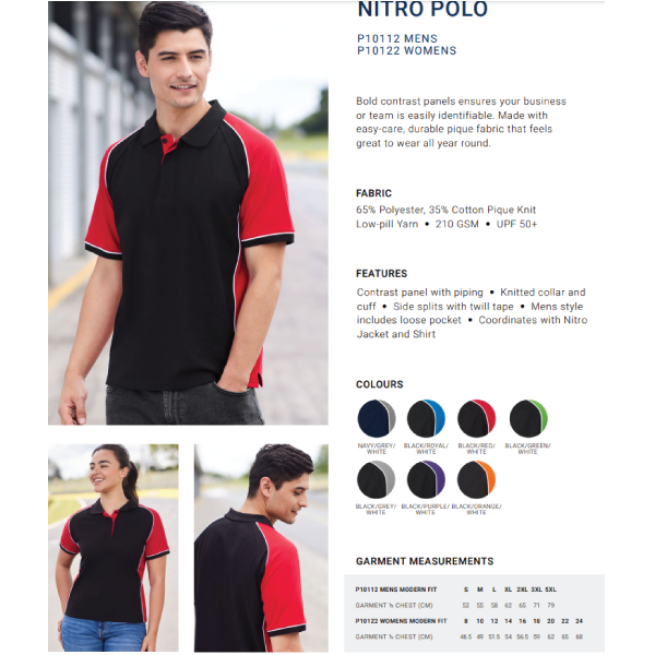 65% Polyester, 35% Cotton pique knit, low-pill yarn, 210 GSM; UPF Rating 50+