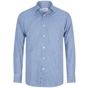 The long-sleeved euro fit shirt in blue gingham cotton rich fabric is a stylish and contemporary choice that exudes charm and sophistication. The euro fit is tailored to provide a slim and modern silhouette, enhancing your overall appearance.