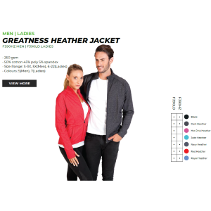 • 260 gsm• 50% cotton 45% poly 5% spandex
