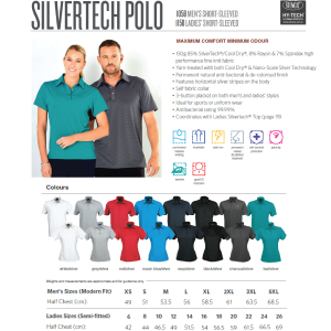 130g 85% SilverTech®/Cool Dry®, 8% Rayon & 7% Spandex high performance fine knit fabric